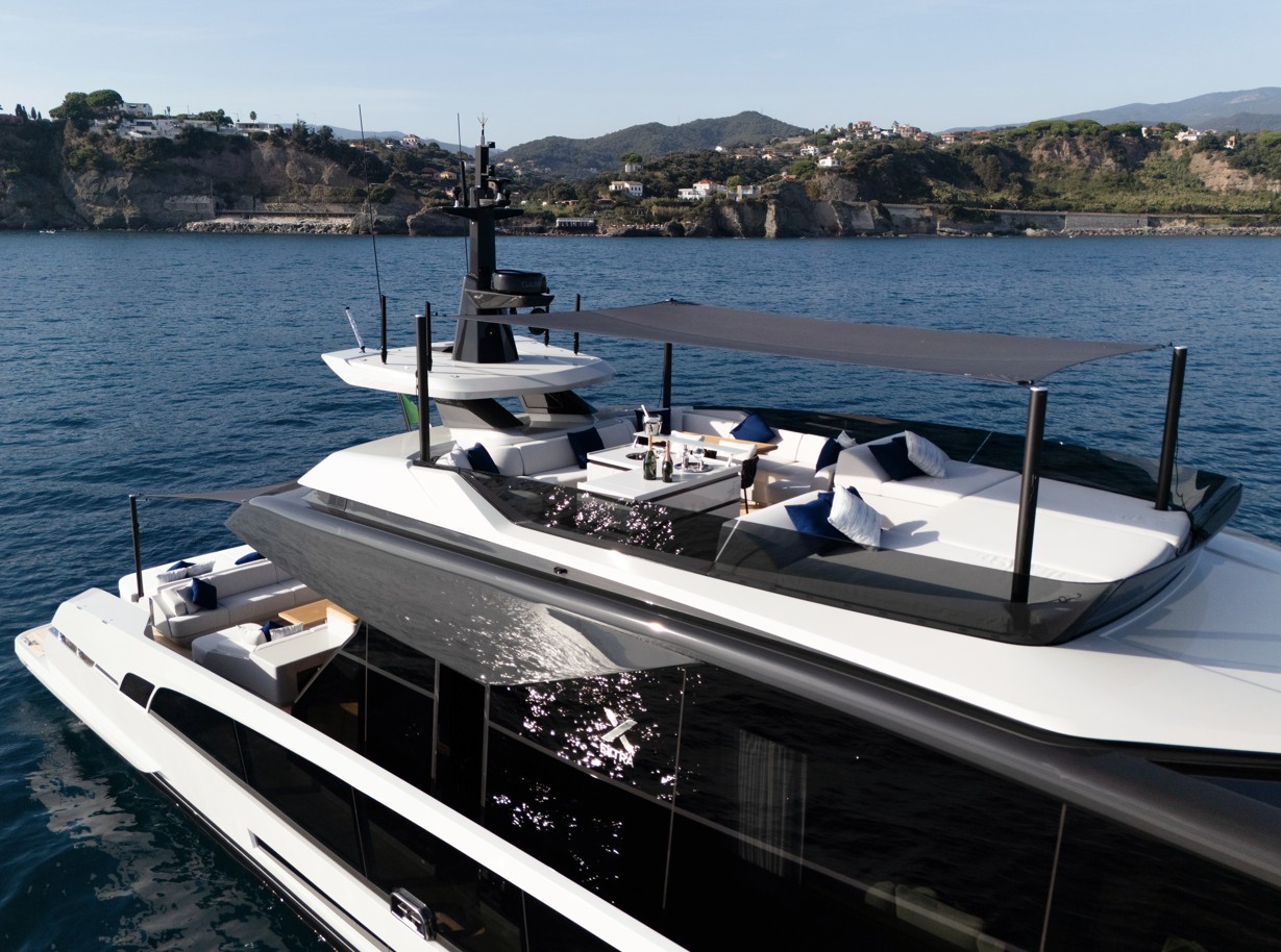 Son design extérieur audacieux, ses vastes espaces de vie extérieurs et la connexion fluide entre intérieur et extérieur en font un yacht idéal pour la croisière, notamment en Méditerranée. Sa carène optimisée garantit des performances impressionnantes tout en assurant stabilité et efficacité à grande vitesse.